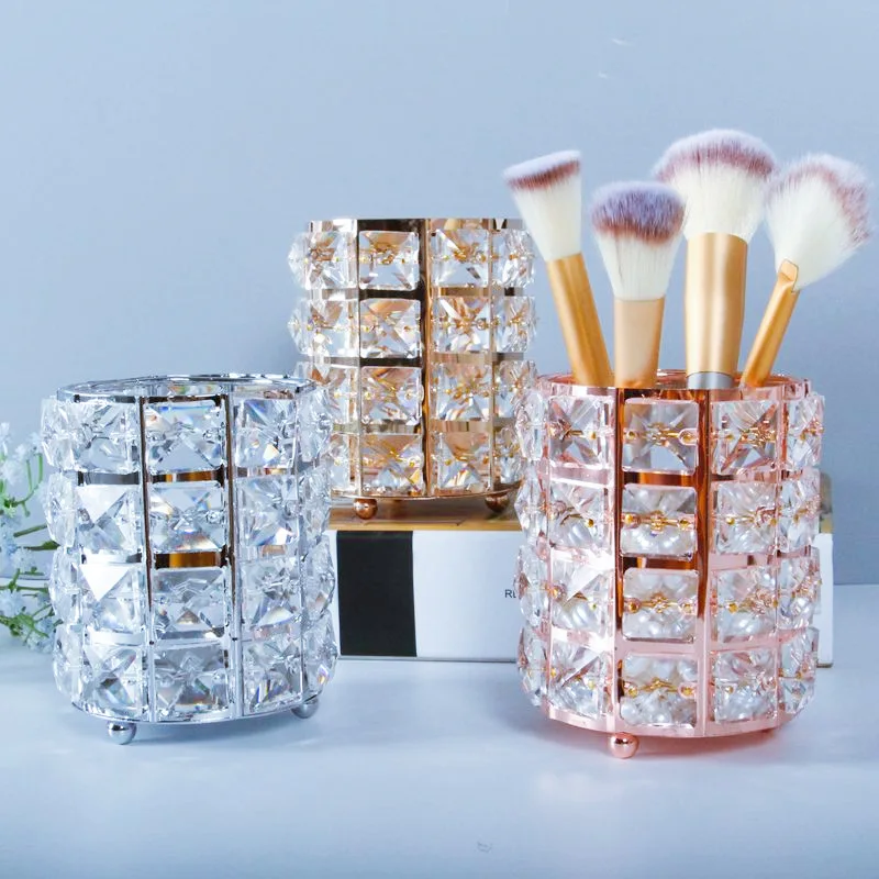 Related Product for Glass Decor Iron Rose Gold Crystal Makeup Organizer Eyeliner Brush Set Storage Cup Dressing Table M